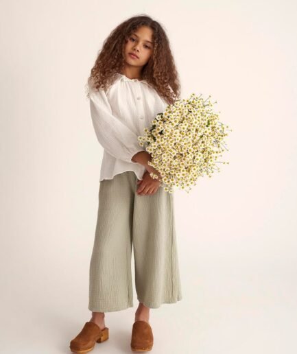 أضيفي لمسة من الراحة والأناقة لخزانة صغيرك مع البنطال الواسع من الشاش الناعم.
