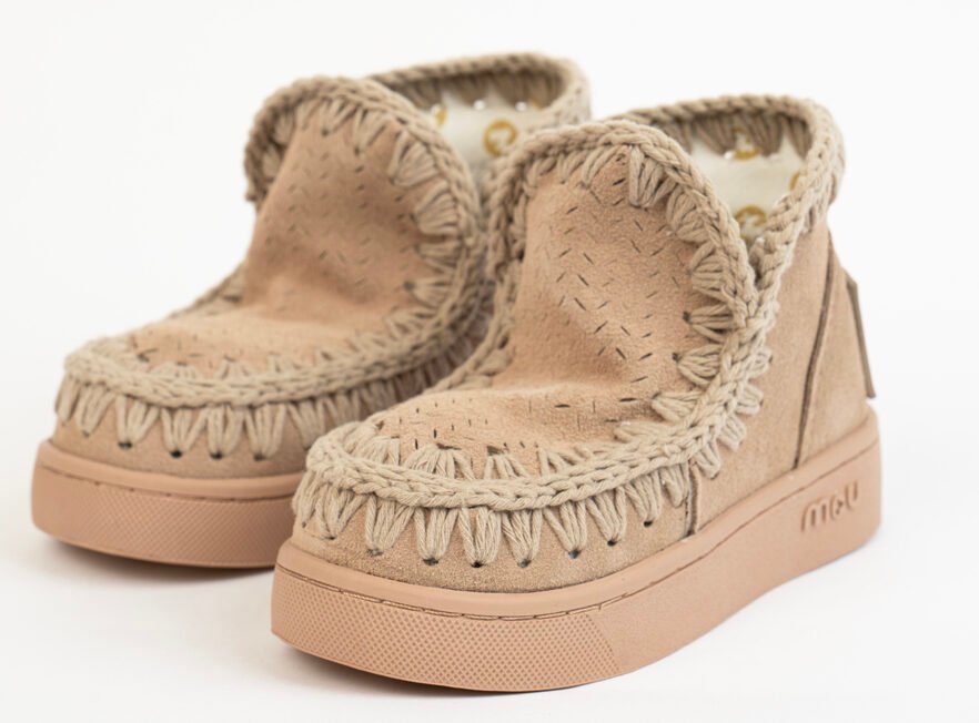 يعتبر هذا الحذاء الرياضي أحادي اللون للأطفال إضافة لطيفة إلى أي زي للطفل. صُنع هذا الحذاء يدويًا من جلد الغزال المثقب، ويمزج هذا التصميم بين أفضل ما في حذاء “مو” إسكيمو وحذاء رياضي عصري، ويتميز بتفاصيل غرزة الكروشيه التي تشتهر بها علامة مو، وبطانة قماشية قطنية مخططة بلونين، ونعل داخلي مبطن من جلد الغزال، وكعب داعم ونعل مطاطي مريح. الارتفاع 11 سم.