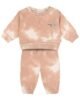 طقم من قطعتان، سويت شيرت وبنطلون بعلامة بتصميم عالمي، بنطال مزود بحزام خصر مطاطي وأربطة قابلة للتعديل من الأمام. الأربطة مربوطة للأمان.
