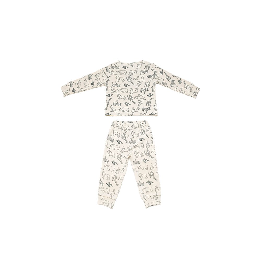 طقم مكون من قطعتان، تي شيرت بأكمام طويلة وبنطال بيجاما طويل مقترن بخصر مطاطي.