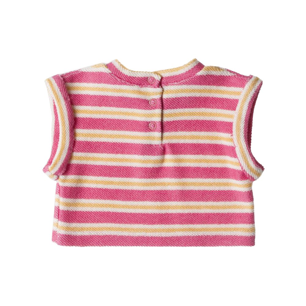 تيشيرت بخطوط قماش المناشف بلون الأزالية ماركة يلو! يجمع بين الخطوط المرحة وملمس المناشف الناعم، مما يوفر الراحة والأناقة لطفلك. مصنوع من قماش عالي الجودة، هذا التوب مثالي للأيام المشمسة، حيث يوفر شعورًا باردًا ومنعشًا. يتميز التصميم بنمط خطوط مشرق ومبهج بألوان وردية وصفراء وبيضاء، مما يضيف لمسة حيوية لأي زي. يتضمن أيضًا إغلاقًا سهلًا بزر في الخلف لسهولة الارتداء.