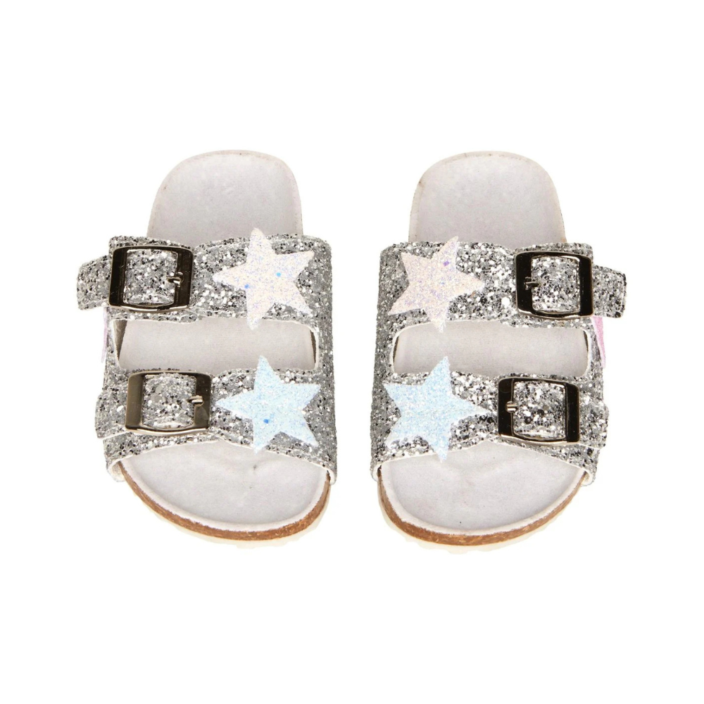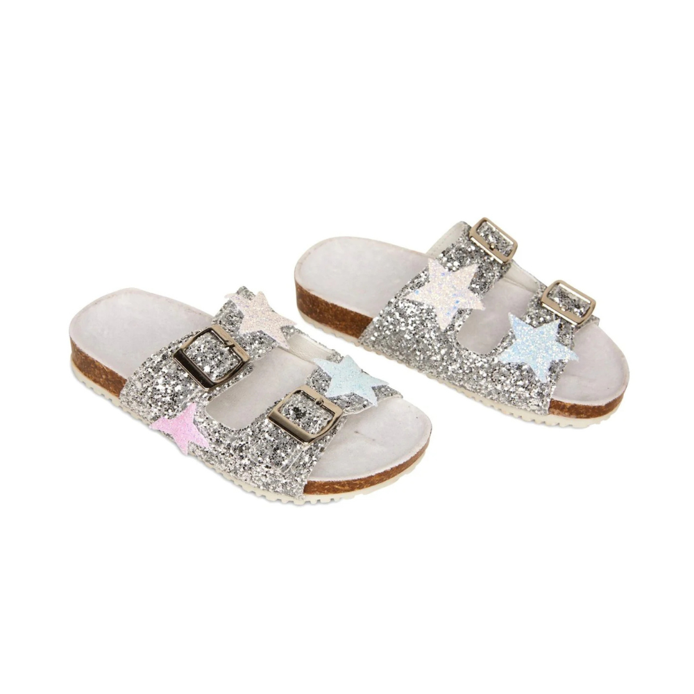 تألق فضي مع نجوم أنيقة يجعل هذه الصنادل ذات الحزامين مرحة ومبهرة. ✨ الخيار المثالي لإضفاء لمسة راقية على أي إطلالة كاجوال. أنثوية، مريحة، وعصرية تمامًا لتناسب أحدث الصيحات