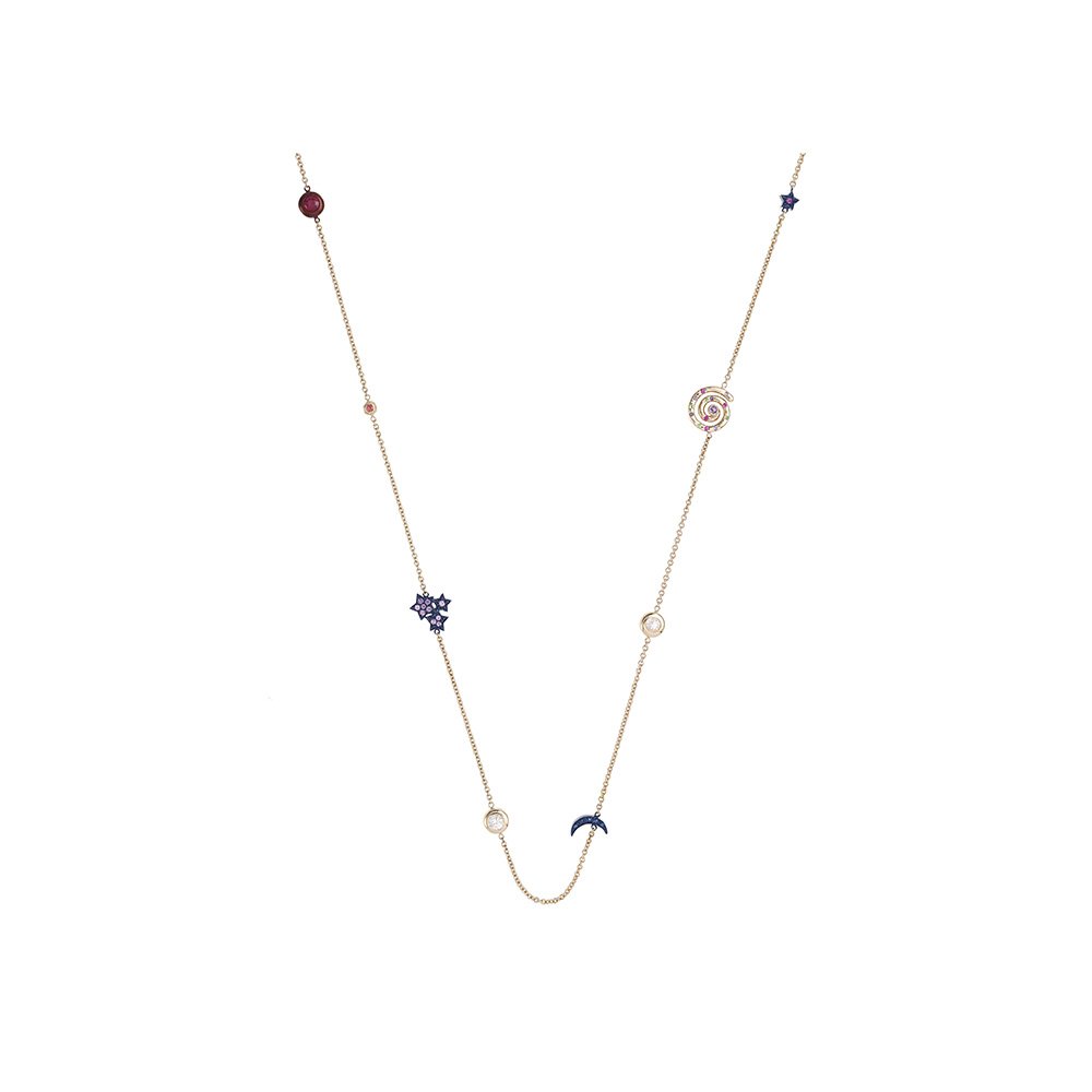 عقد سماوي من مارماري يجسد جمال السماء الليلية في تصميم أنيق وفاخر. مصنوع من الفولاذ المقاوم للصدأ ومطلي بذهب عيار 18 بتقنية الطلاء الإلكتروني المتطورة، ليمنحك لمعانًا يدوم طويلًا ومقاومًا للتآكل. يتميز بتصميم أنثوي راقٍ مستوحى من النجوم ليضيف لمسة من الجمال والرقي على أي إطلالة.