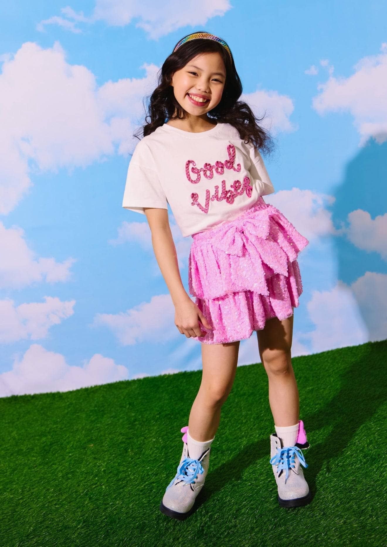 يتميز بتصميم “Good Vibes” النابض بالحيوية والمزيّن بكريستالات وردية لامعة تضيف لمسة مرحة وإيجابية.