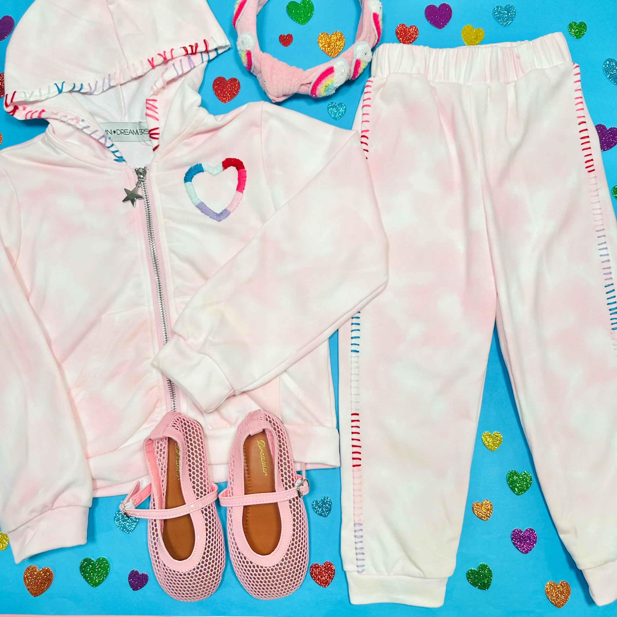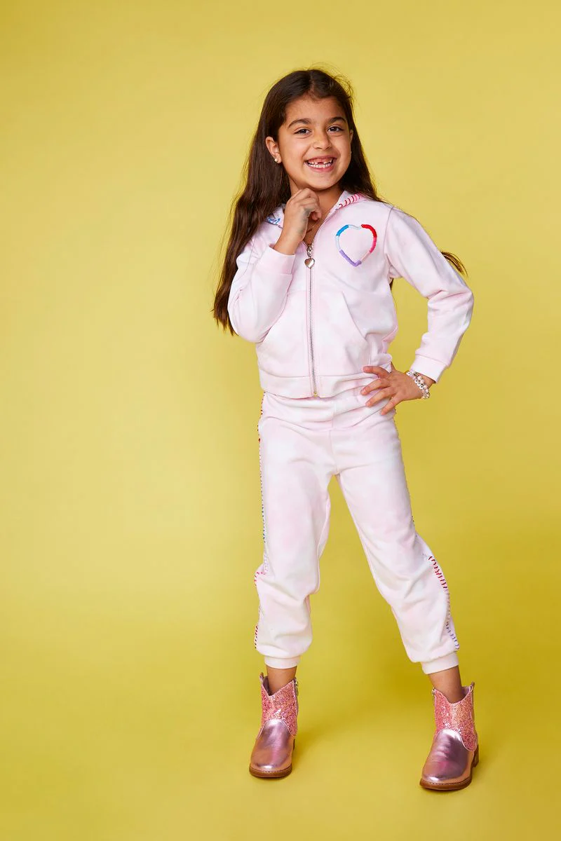 طقم آفا بتدرّجات صبغة التاي داي وتطريز القلب مُصمّم بعناية للصغار الحالمين — يجمع بين الأناقة والراحة والعملية لمغامراتهم اليومية.