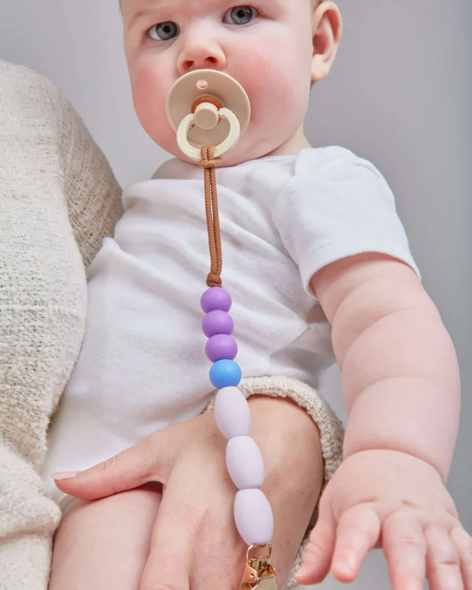 يهدّئ اللثة ويحافظ على العضّاضة قريبة وآمنة. يتميز بتصميم ناعم صديق للفم ومشبك سهل التركيب، مما يجعل الخروج مع الطفل أكثر راحة وسهولة.