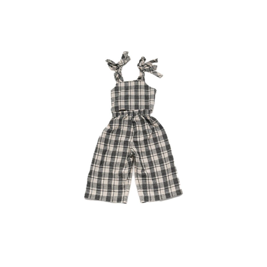 The Nueces Black and Ivory Plaids Sky Jumpsuit is a stylish and comfortable outfit for girls. Made with soft, breathable fabric, this jumpsuit features a classic plaid design with cute shoulder tie straps and a relaxed fit. Perfect for casual outings, playdates, or special occasions, it’s both trendy and easy to wear.