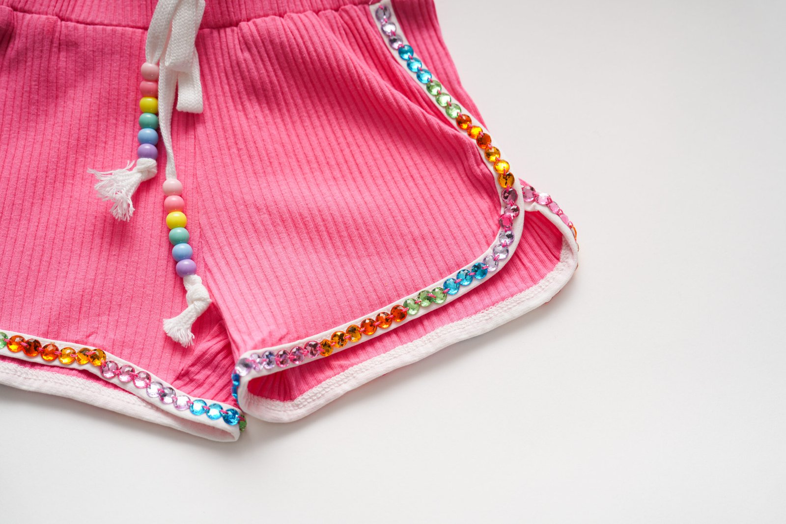 - Charming pink set featuring playful candy gem beads and delicate ruffle details, perfect for adding a touch of whimsy to any outfit.