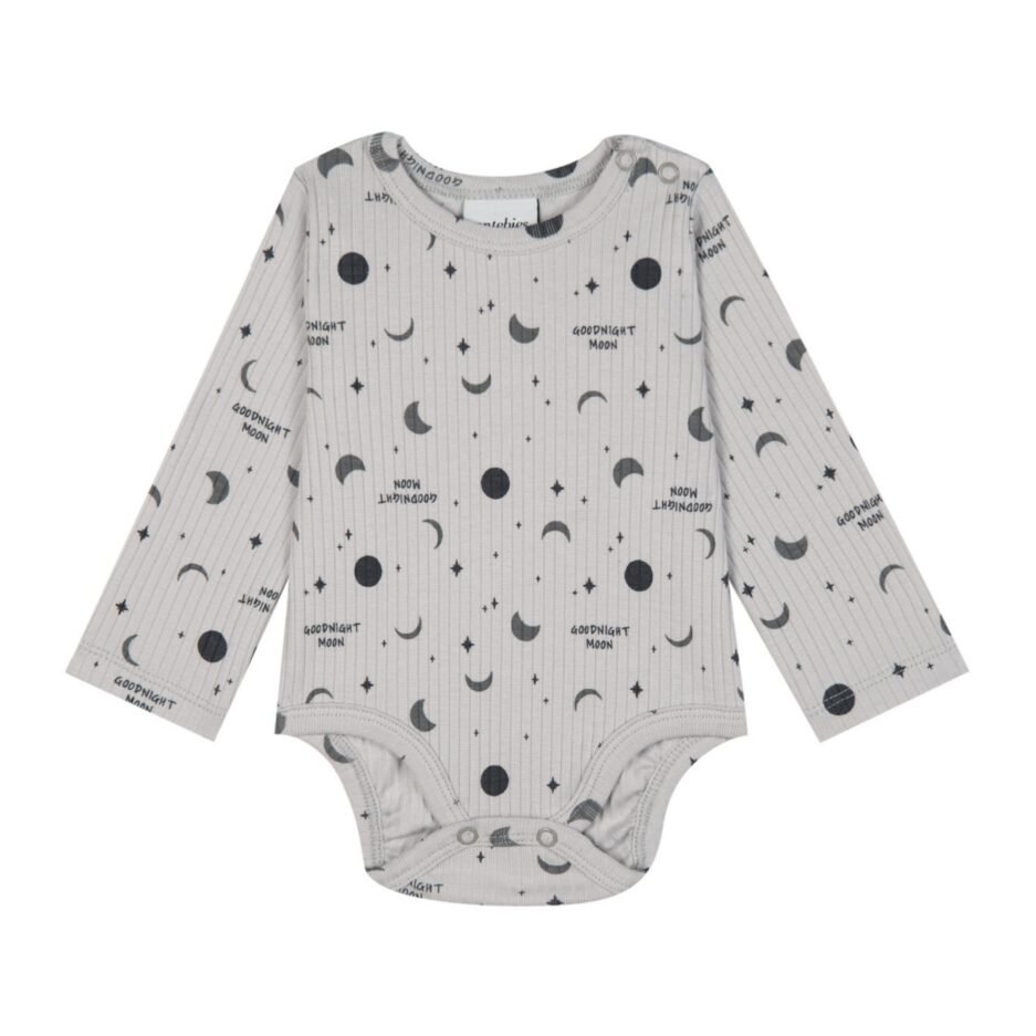Long sleeve bodysuit has poppers on the back of the neckline and crotch for easy changing.