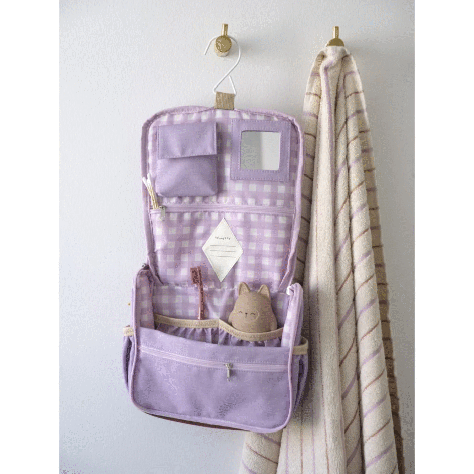 Fabelab Toiletry bag with hanger – Cottage Blue is perfect when you are going on vacation or just heading for a little getaway for the weekend. The outer and inner shell fabric is made from PFC-free Recycled Post-Consumer Polyester.